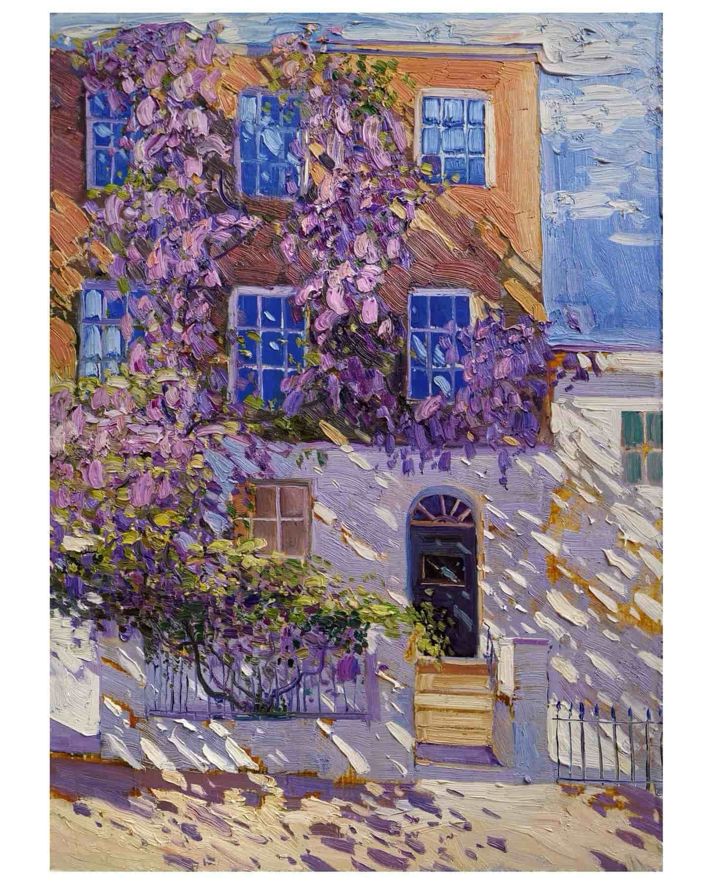 Ciochină is fascinated by the interplay of light and texture, drawing on the legacy of the Impressionists in the way he captures the intricacies of landscapes in oil. He captures the sun dashing off the sea, glows in narrow streets, or casts dramatic shadows of trees onto buildings and paths. Employing an impasto technique featuring energetic, visible brushstrokes, he highlights the unique textures and patterns of each place, bordering on low relief. This painting is displayed on this website for exhibition purposes only and is not for sale. If you are interested in purchasing, please contact the artist via Instagram landscapesergiy.